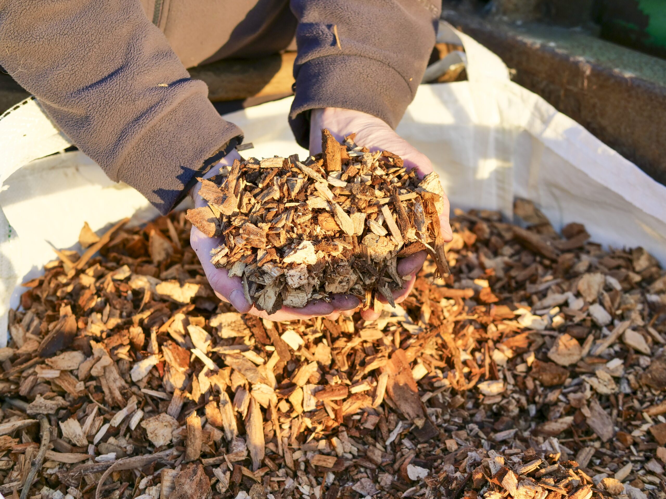 Caledonian Premium Woodchip Mulch is a pure woodchip that’s longer lasting than our regular Garden Mulch due to it being chipped solely from hard and soft wood tree trunks.